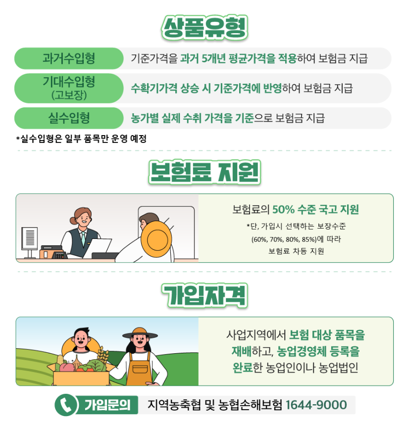 확대된 보장 품목과 함께 더 많은 농가에서 혜택을 받을 수 있게 된 만큼, 지금 바로 가까운 농협에 문의하여 가입하시고 풍년에도, 흉년에도 걱정 없는 2025년을 만들어 가시길 바랍니다!