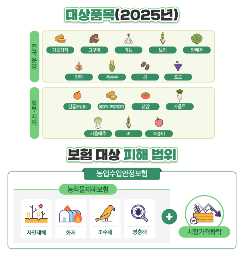 ✅ 2025년 농업수입안정보험 가입 가능 품목: